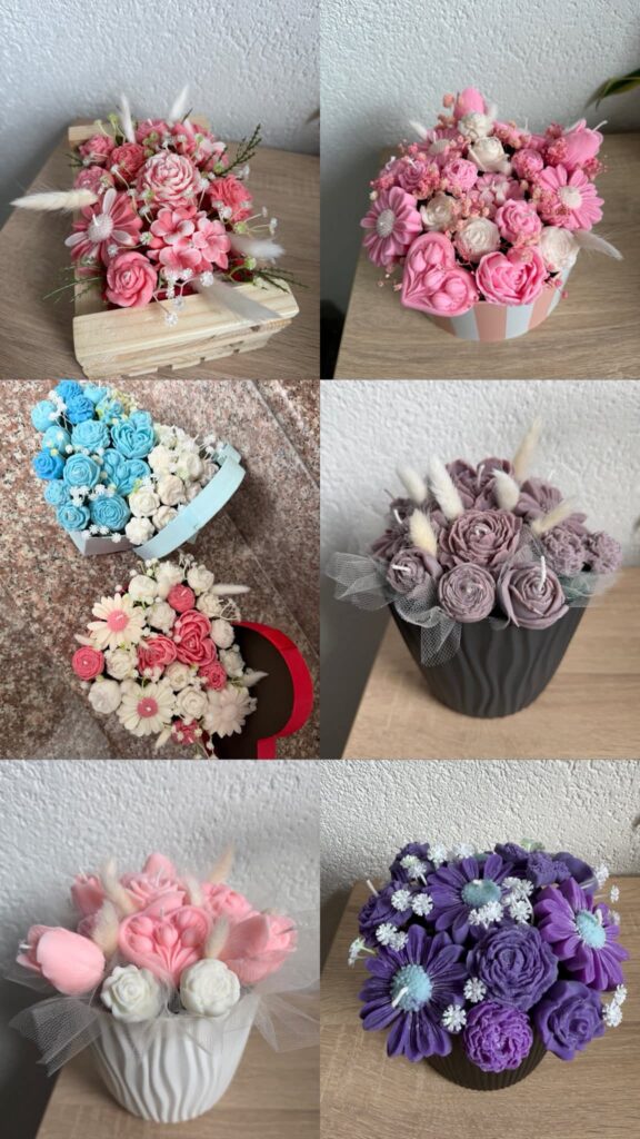 Dostupni će vam biti lijepo upakirani karanfili, ruže, razno cvijeće u saksijama te Svjetlanini radovi: buketi od svijeća, pojedinačno lijepo upakirane svijeće, čestitke sa svijećama, gipsane ukrasne posudice…