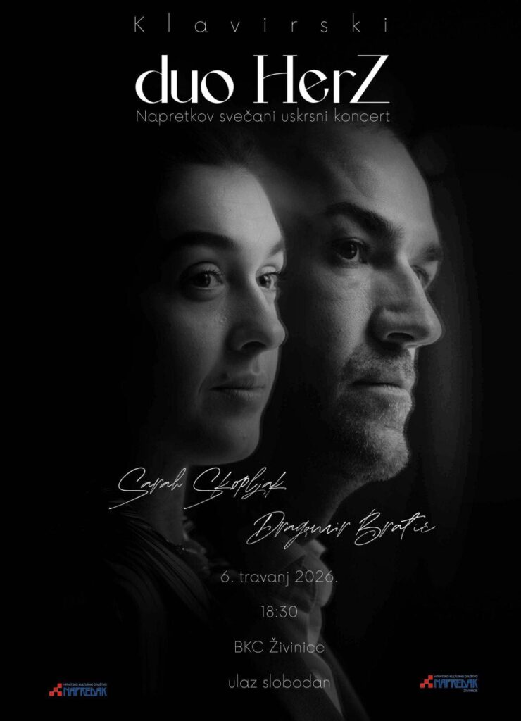 U ozračju blagdanske topline i uzvišene umjetnosti, publika će imati priliku uživati u iznimnom glazbenom doživljaju klavirskog dua “HerZ”, kojeg čine vrhunski umjetnici Sarah Skopljak i Dragomir Bratić. Njihova interpretacija donosi spoj virtuoznosti, emocije i profinjene glazbene komunikacije koja nadilazi riječi.
